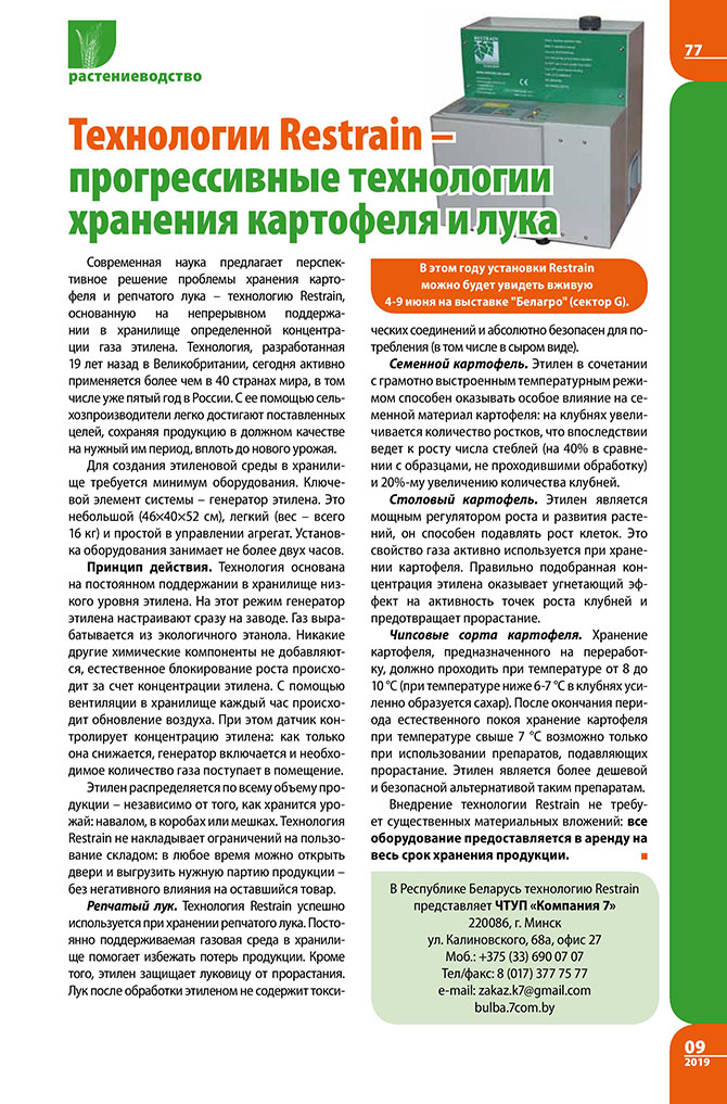 Технологии Restrain ‒ прогрессивные технологии хранения картофеля и лука