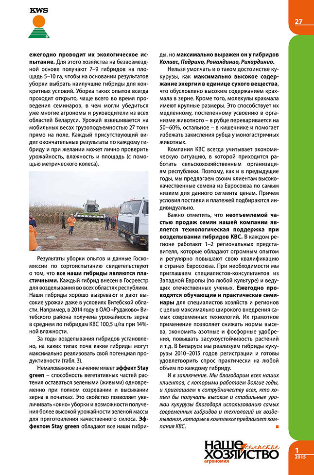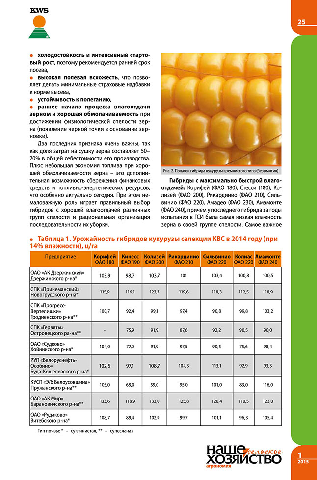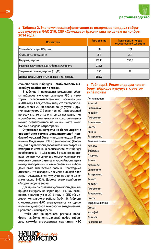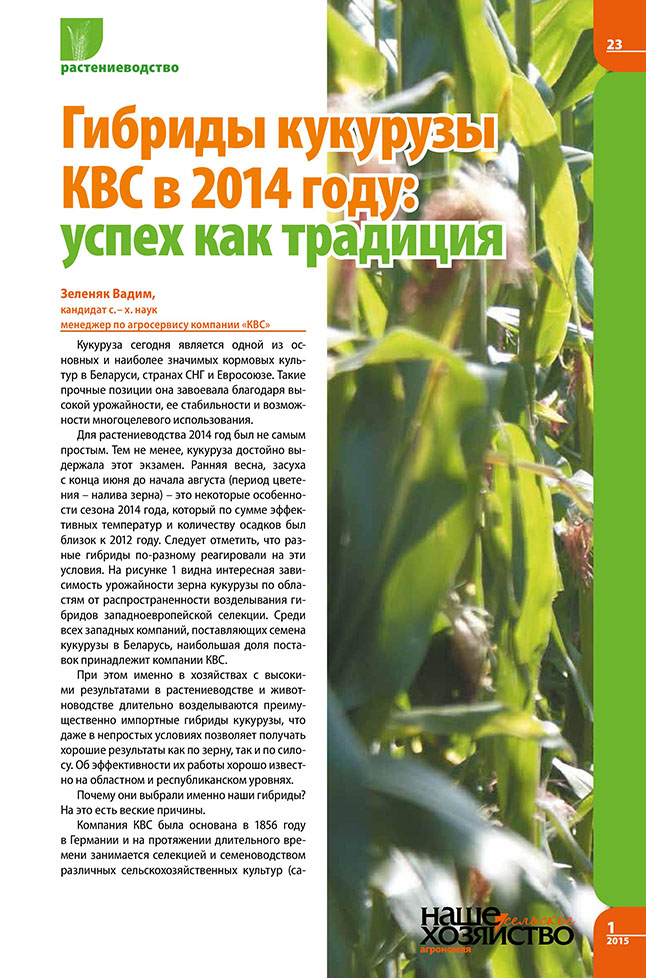 Зеленяк В. Гибриды кукурузы КВС в 2014 году: успех как традиция.