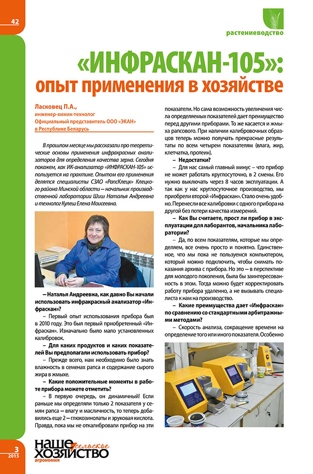 Ласковец П.А. «ИНФРАСКАН-105»: опыт применения в хозяйстве