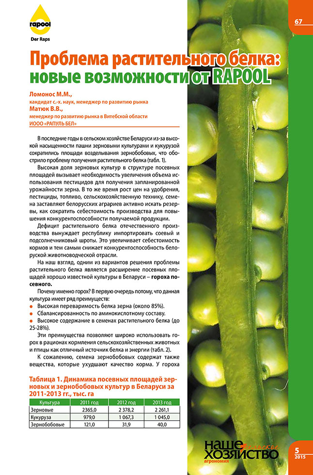 Ломонос М.М., Матюк В.В. Проблема растительного белка: новые возможности от RAPOOL