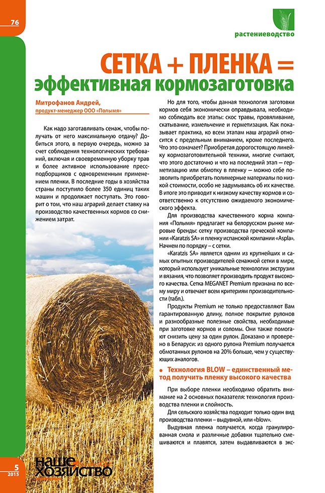 Митрофанов А. Сетка + пленка = эффективная кормозаготовка