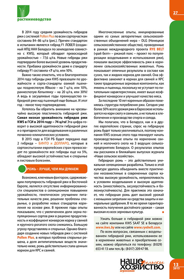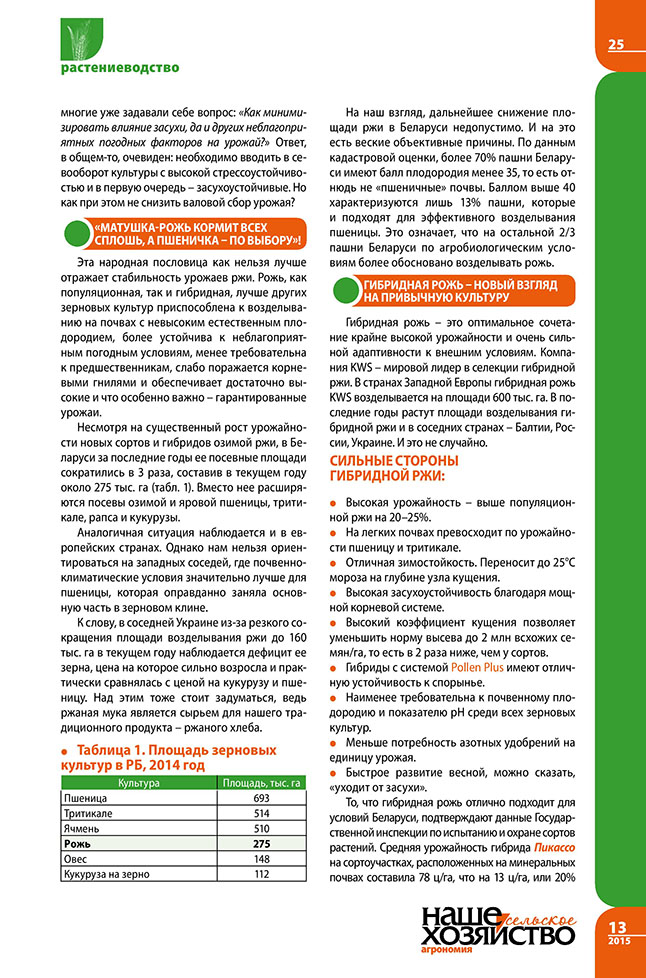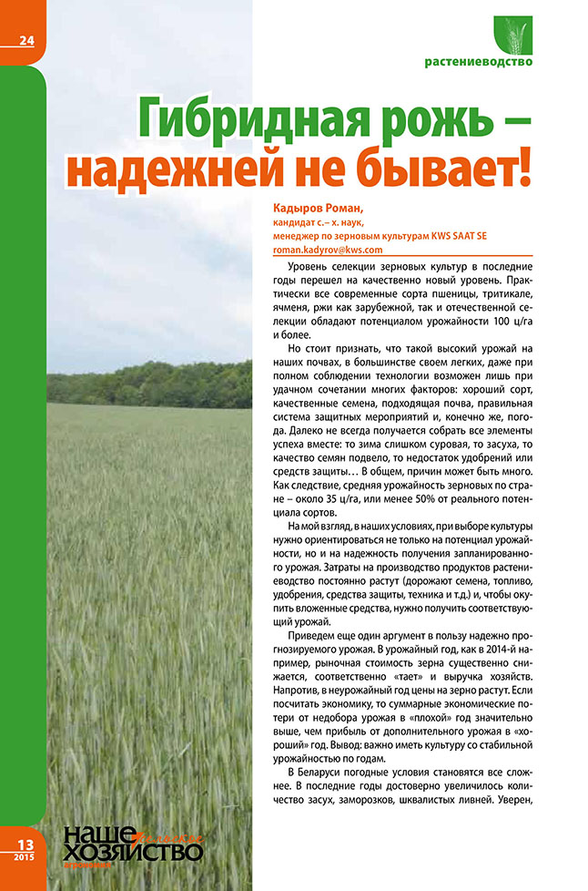 Кадыров Р. Гибридная рожь ‒ надежней не бывает!