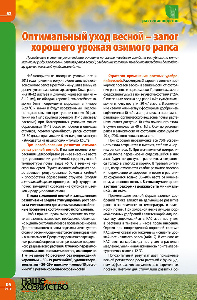 Оптимальный уход весной – залог хорошего урожая озимого рапса