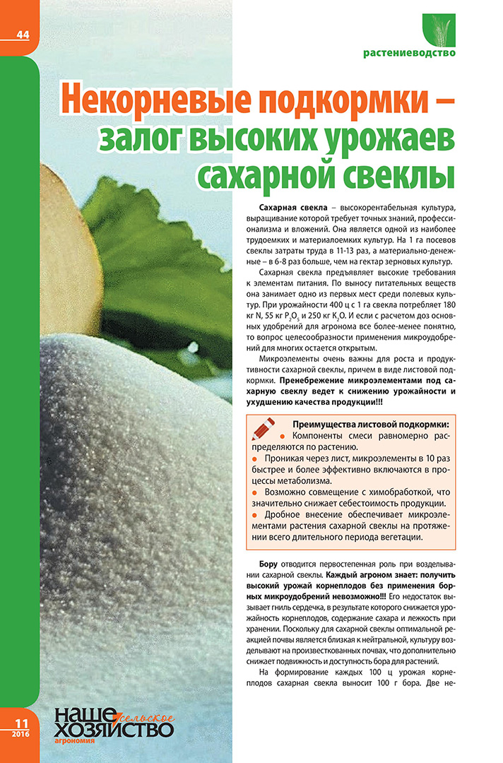 Некорневые подкормки – залог высоких урожаев сахарной свеклы