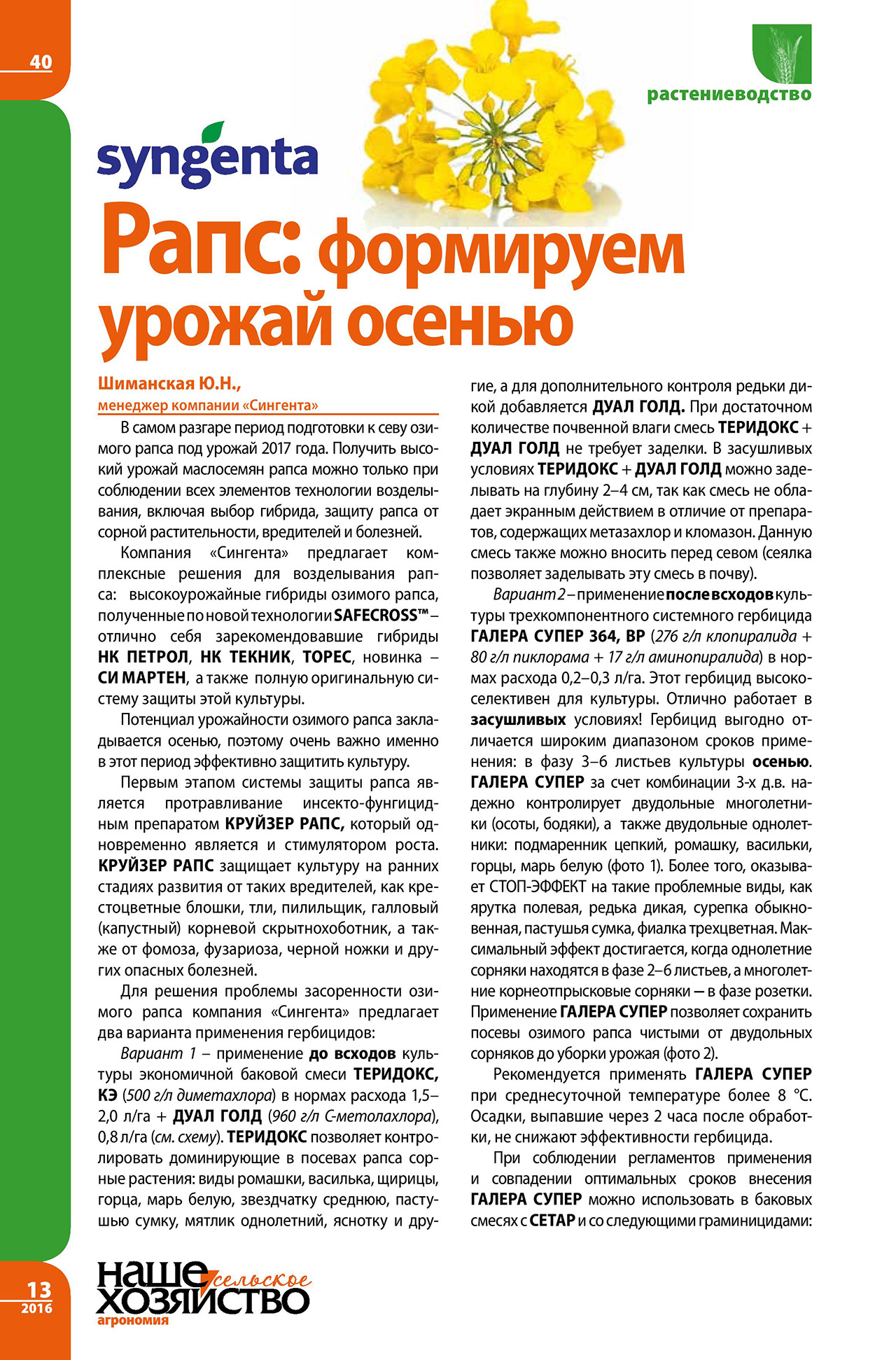 Шиманская Ю.Н. Рапс: формируем урожай осенью