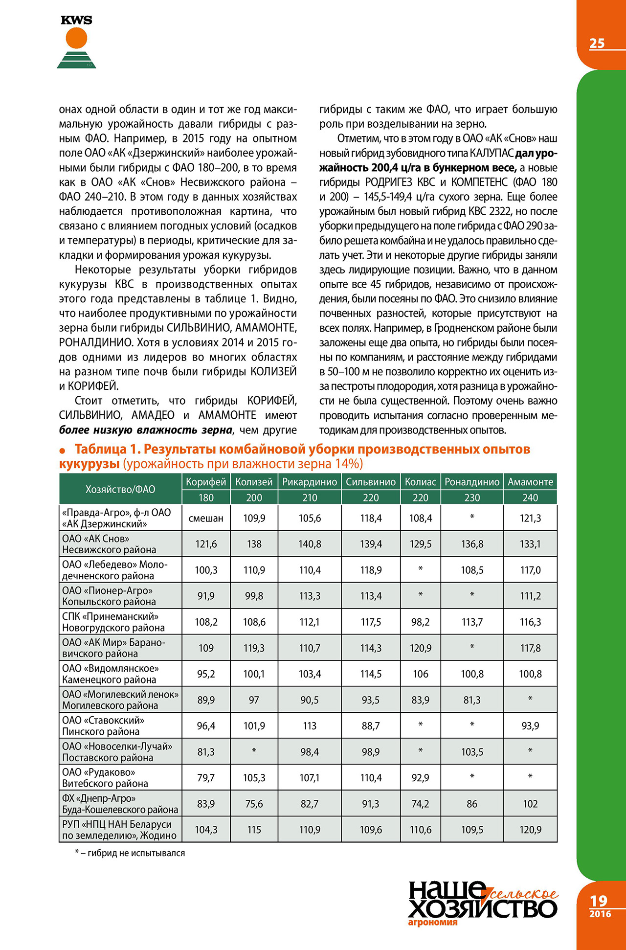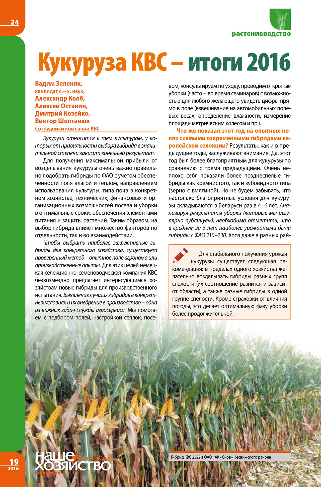 Зеленяк В., Колб А., Останин А., Шолтанюк В. Кукуруза КВС – итоги 2016-10-27