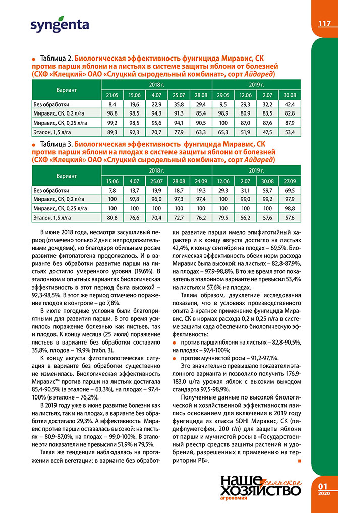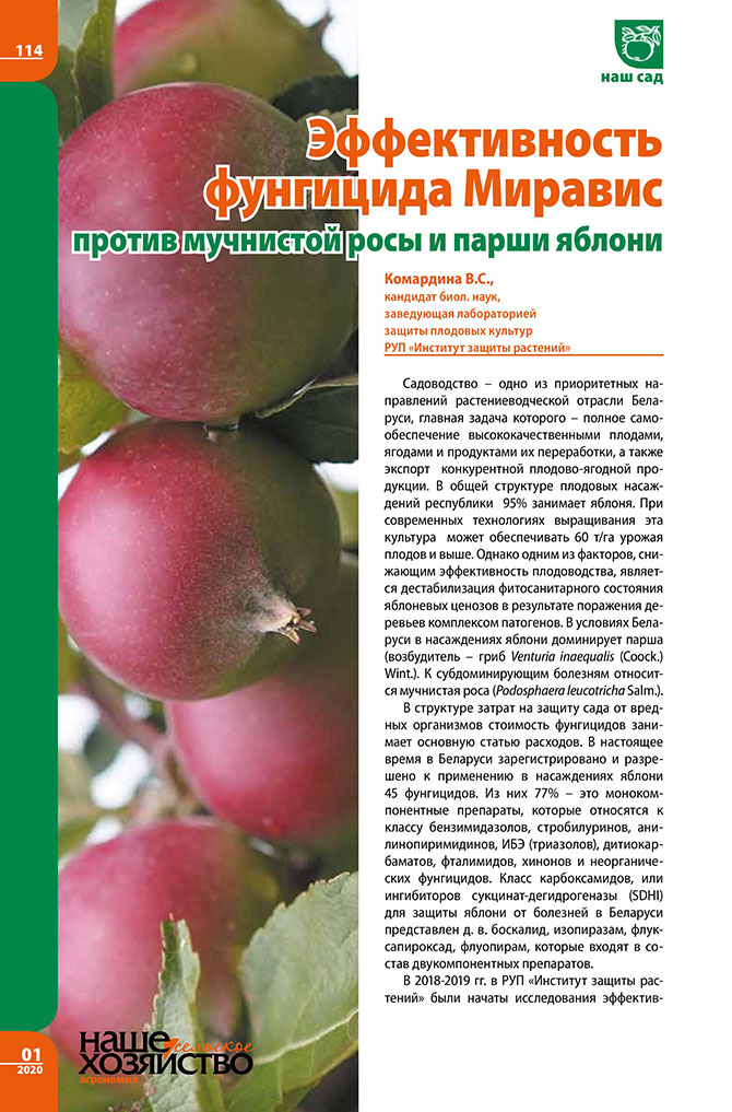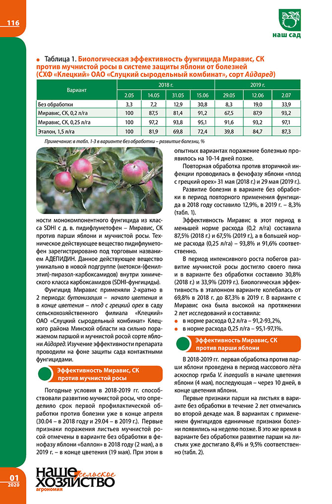 Эффективность фунгицида Миравис против мучнистой росы и парши яблони