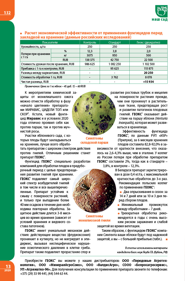 ГЕОКС® – снижение болезней плодов яблони при хранении