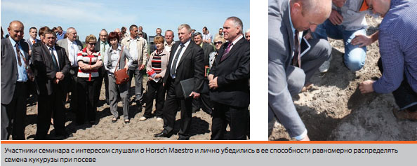 Весна 2013-го. Как никогда, поздняя и короткая. А сделать за это время предстоит многое: подготовить почву, пересеять где надо озимые, посеять яровые, подкормить и прополоть зерновые, защитить и подкормить рапс. Как тут все успеть? Но в ОАО «Чемерисский» Брагинского района не боятся трудностей. Здесь давно поняли: без современной высокопроизводительной техники не будет успеха на поле. Поэтому и делают ставку на внедрение прогрессивных технологий и практически ежегодно приобретают по единице новой техники. Причем к покупке подходят взыскательно и взвешенно, выбирая только современные высокопроизводительные модели от компаний, имеющих надежную репутацию на мировом рынке. Например, в этом году обзавелись еще одной новинкой – кукурузной сеялкой Horsch Maestro 24SW, которую с гордостью демонстрировали на семинаре 10 мая 2013 года, организованном ООО «Агрофинанс» – официальным представителем Horsch в Беларуси.