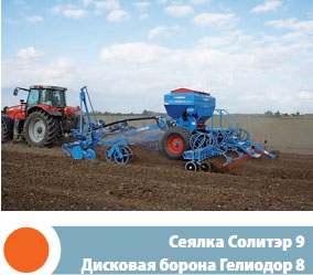 На стенде ПОЛЫМЯ будет также представлен шестиметровый посевной комплекс, состоящий из универсальной пневматической сеялки Солитэр 9 и дисковой бороны Гелиодор 8, который имеет ряд положительных особенностей: