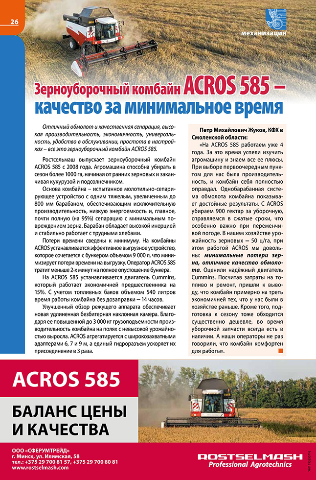 Зерноуборочный комбайн ACROS 585 – качество за минимальное время