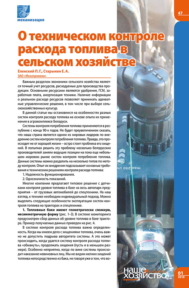 Еленский П.Г., Старынин Е.А. О техническом контроле расхода топлива в сельском хозяйстве