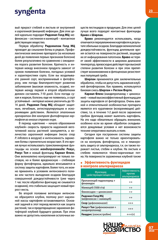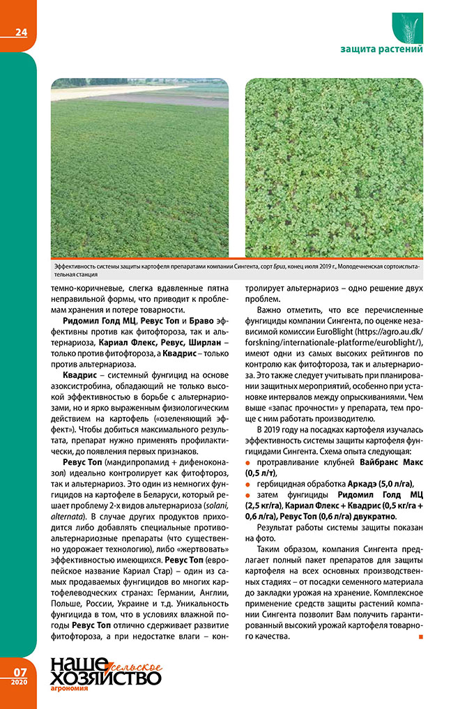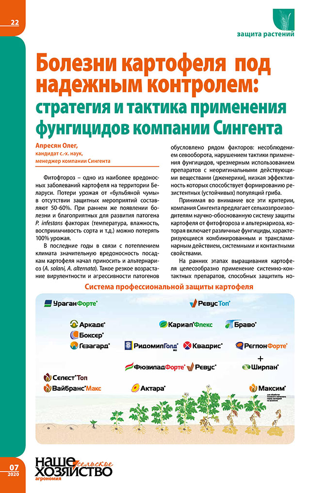 Болезни картофеля под надежным контролем: стратегия и тактика применения фунгицидов компании Сингента