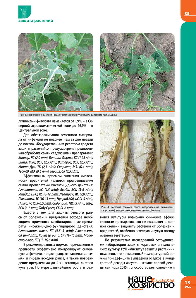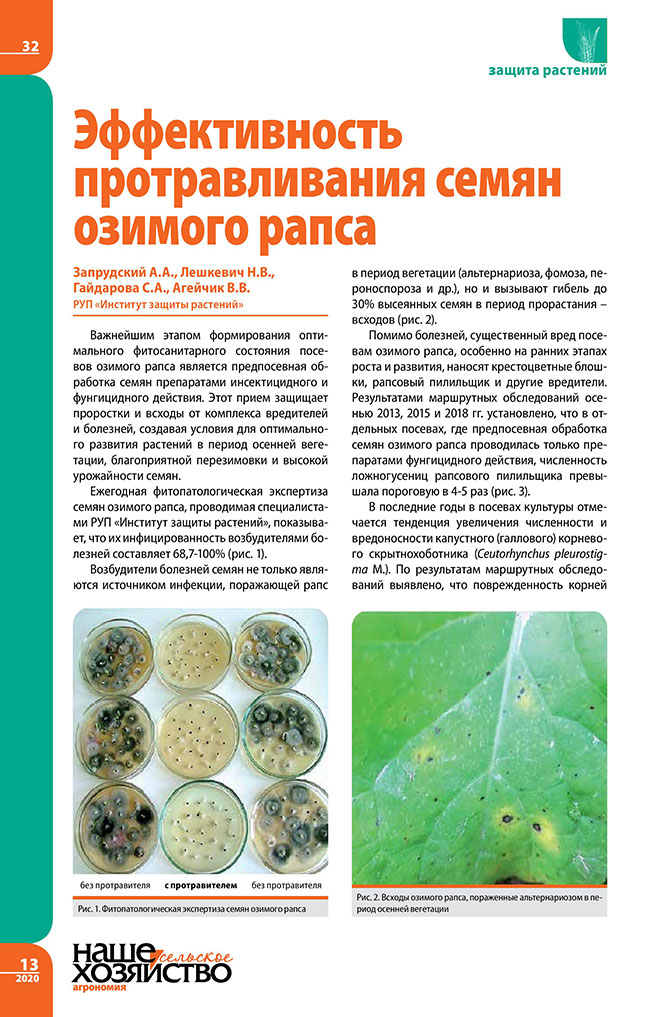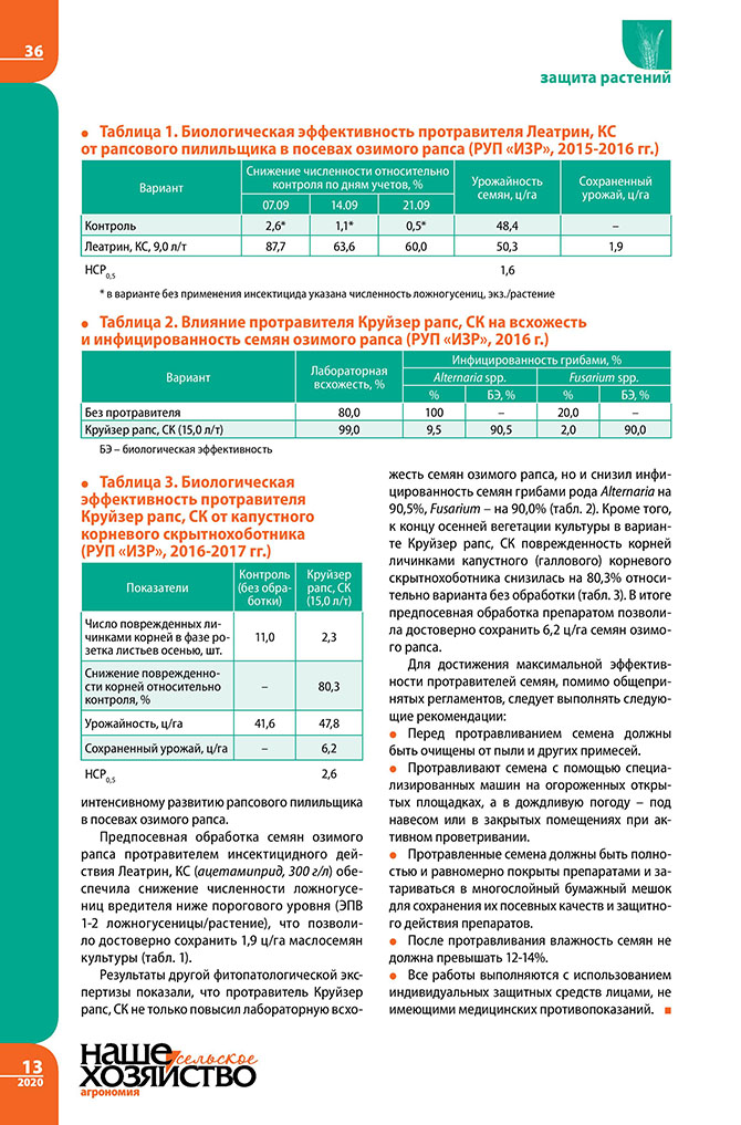 Эффективность протравливания семян озимого рапса