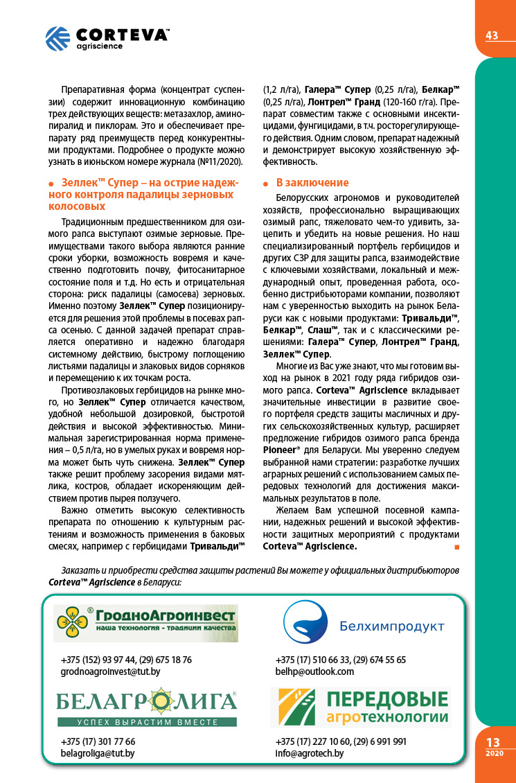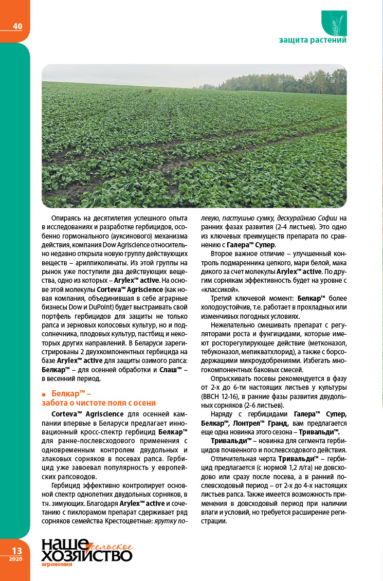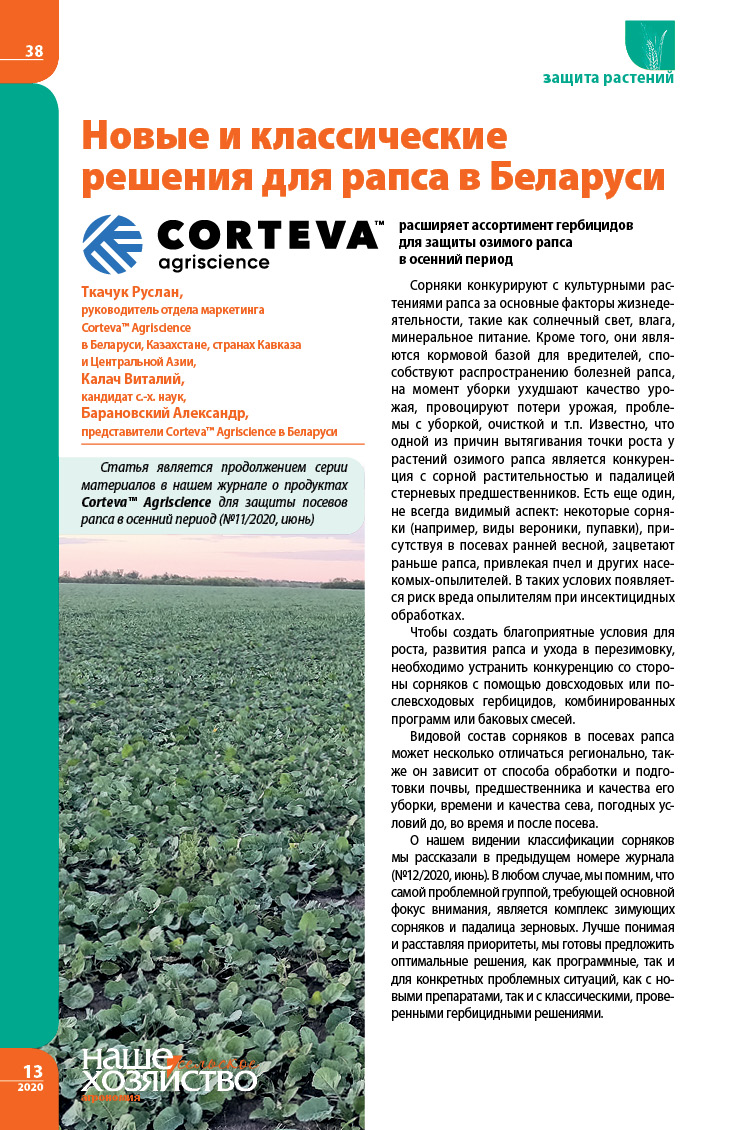 Новые и классические решения для рапса в Беларуси
