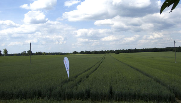 – Лично меня особенно поразила работа фунгицида Амистар Экстрана озимой пшенице в РУП «Толочинский консервный завод» Витебской области. В данном опыте эффективность «Амистар технологии» подтверждалась не только колоссальной прибавкой урожая (по сравнению со схемой хозяйства – на 24 ц/га, по сравнению со схемой оригинальных продуктов другой компании – на 6–8 ц/га), но и контрастным состоянием посевов в период налива зерна. Участники «Дня поля» хорошо помнят четко выраженный «озеленяющий эффект» от применения фунгицида (фото) по сравнению с другими системами, расположенными по обе стороны от этого варианта. Как говорится, лучше один раз увидеть, чем много раз услышать, что более убедительно в том числе и для меня.