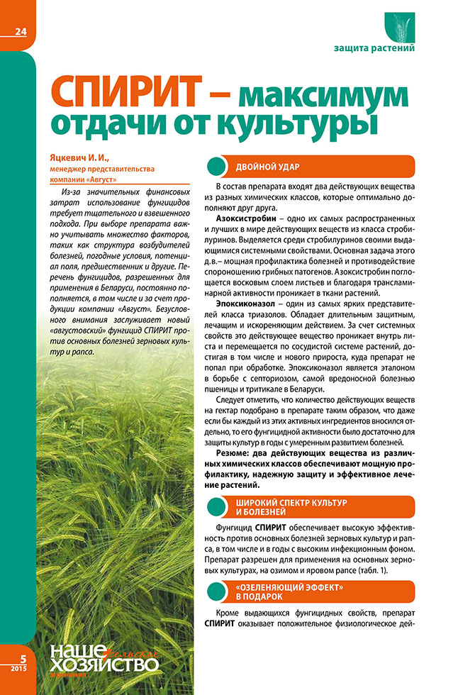 Яцкевич И.И. Спирит – максимум отдачи от культуры