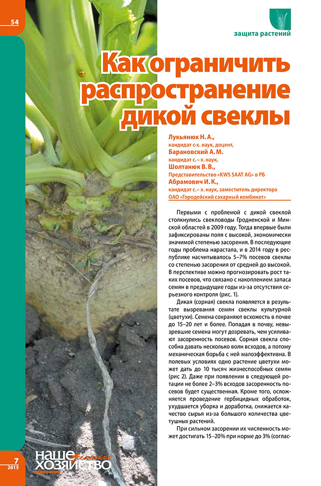 Лукьянюк Н.А., Барановский А.М., Шолтанюк В.В., Абрамович И.К. Как ограничить распространение дикой свеклы