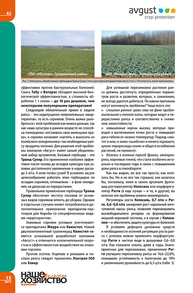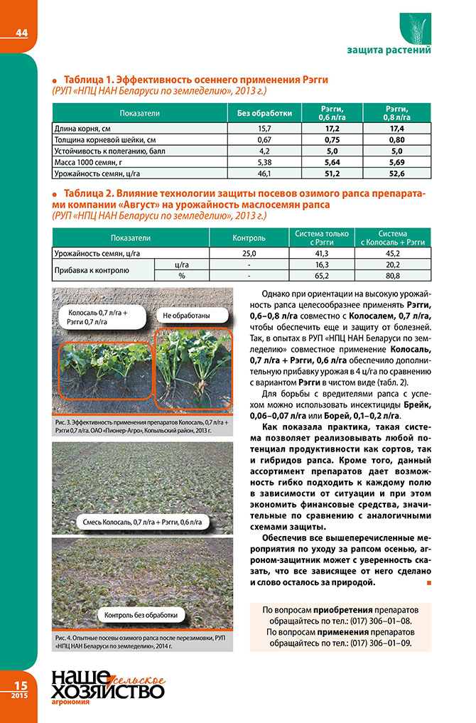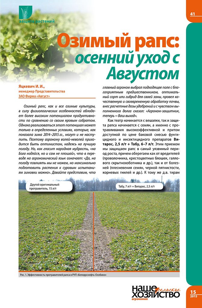 Яцкевич И.И. Озимый рапс: осенний уход с Августом