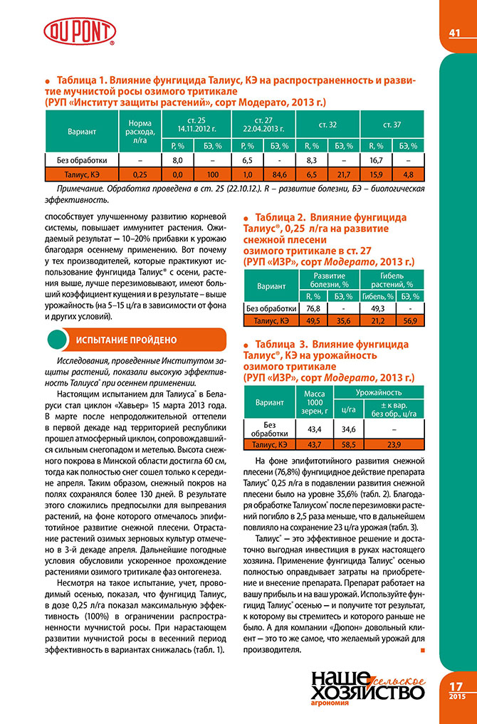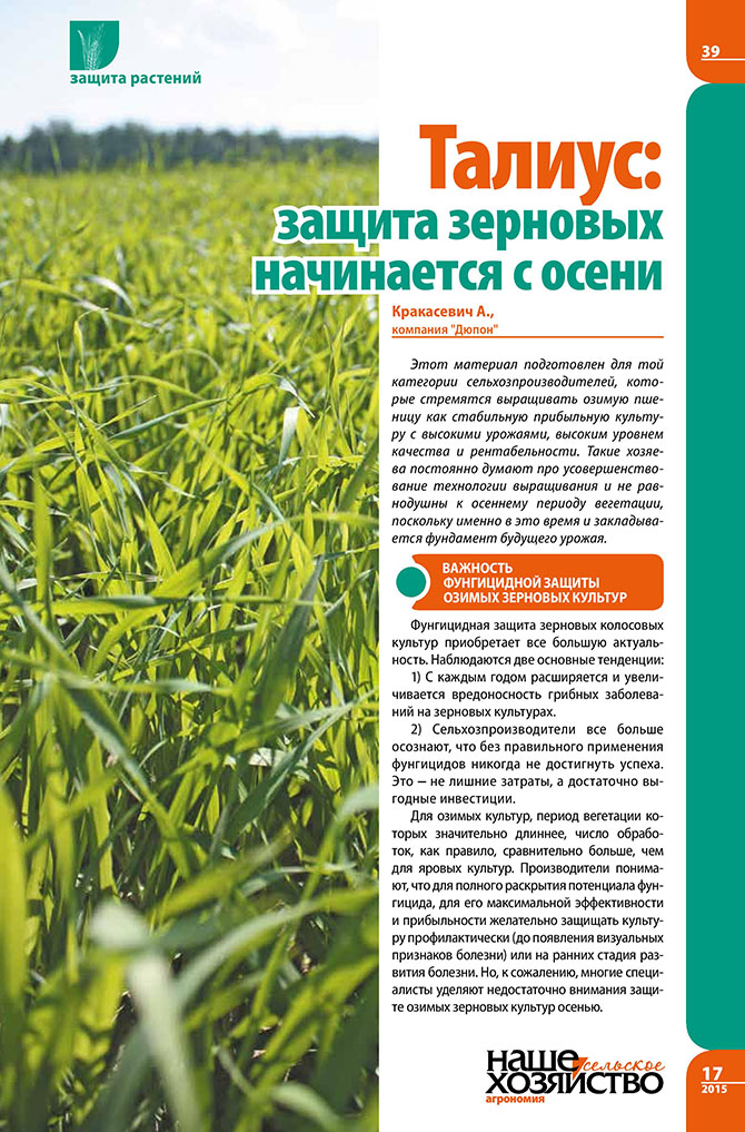 Кракасевич А. Талиус: защита зерновых начинается с осени