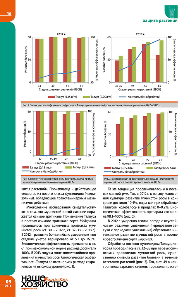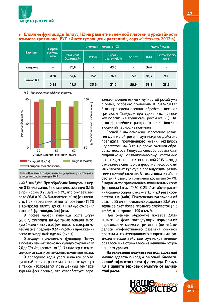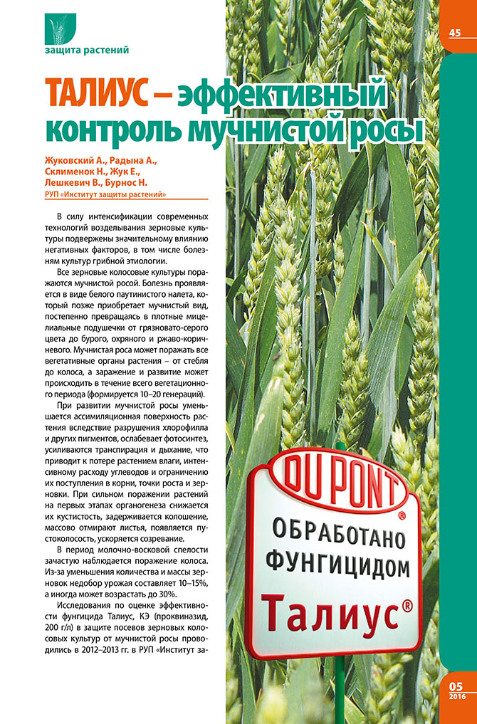 Жуковский А., Радына А., Склименок Н., Жук Е., Лешкевич В., Бурнос Н. Талиус – эффективный контроль мучнистой росы