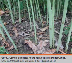 Второй вариант – применение после всходов культуры нового трехкомпонентного системного гербицида Галера Супер, ВР (276 г/л клопиралида + 80 г/л пиклорама + 17 г/л аминопиралида) в нормах расхода 0,2–0,3 л/га. Этот гербицид высокоселективен для культуры. Он выгодно отличается широким диапазоном сроков применения: в фазу 3–6 листьев культуры осенью (см. схему на стр. 58). Галера Супер за счет комбинации 3-х д. в. надежно контролирует двудольные многолетники – осоты, бодяки; а также двудольные однолетники – подмаренник цепкий, ромашку, васильки, горцы, марь белую, кроме этого обладает СТОП – ЭФФЕКТОМ на проблемные виды: сурепку обыкновенную, ярутку полевую, редьку дикую, пастушью сумку, фиалку трехцветную (фото 1). Максимальный эффект достигается, когда однолетние сорняки находятся в фазе 2–6 листьев, а многолетние корнеотпрысковые сорняки – в фазе розетки. Применение Галеры Супер осенью позволяет сохранить посевы озимого рапса чистыми от двудольных сорняков до уборки урожая (фото 2).