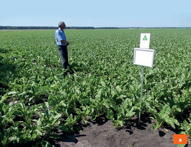 Первая остановка – на поле сахарной свеклы. Невооруженным глазом было видно: идеально чистые от сорняков посевы, растения без каких-либо признаков угнетения или фитотоксичности, высокий потенциал урожая.