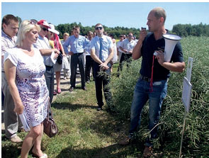 Семинар-учебу открыл директор «СГЦ «Западный» Александр БИЧ, который отметил: во многом производственные успехи этого большого многопрофильного хозяйства возможны благодаря «крепкому костяку специалистов-агрономов, обладающих в определенной степени фанатичным отношением к своей работе». В прошлом году именно здесь была получена рекордная для Беларуси урожайность сахарной свеклы – 800 ц/га! Хотя, по словам Александра Бича, расслабляться некогда, ведь с присоединением еще одного убыточного хозяйства «Пограничник» сельхозугодий стало больше. Как же по максимуму эффективно распоряжаться землей? Одно из основных условий, по мнению директора хозяйства-маяка, – грамотная работа с пестицидами и постоянный поиск новых стратегий защиты посевов. Поэтому в хозяйстве стараются каждый год попробовать что-то новенькое из СЗР, отводя по 20–30 га на «эксперименты».