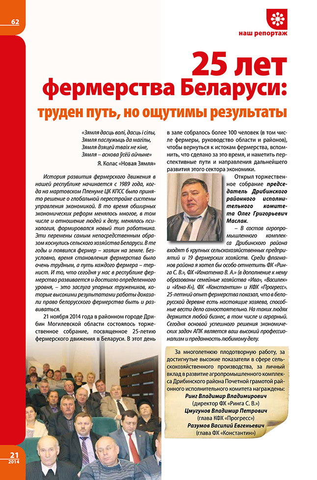 25 лет фермерства Беларуси: труден путь, но ощутимы результаты.