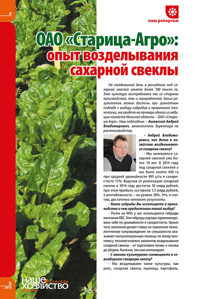 ОАО «Старица-Агро»: опыт возделывания сахарной свеклы