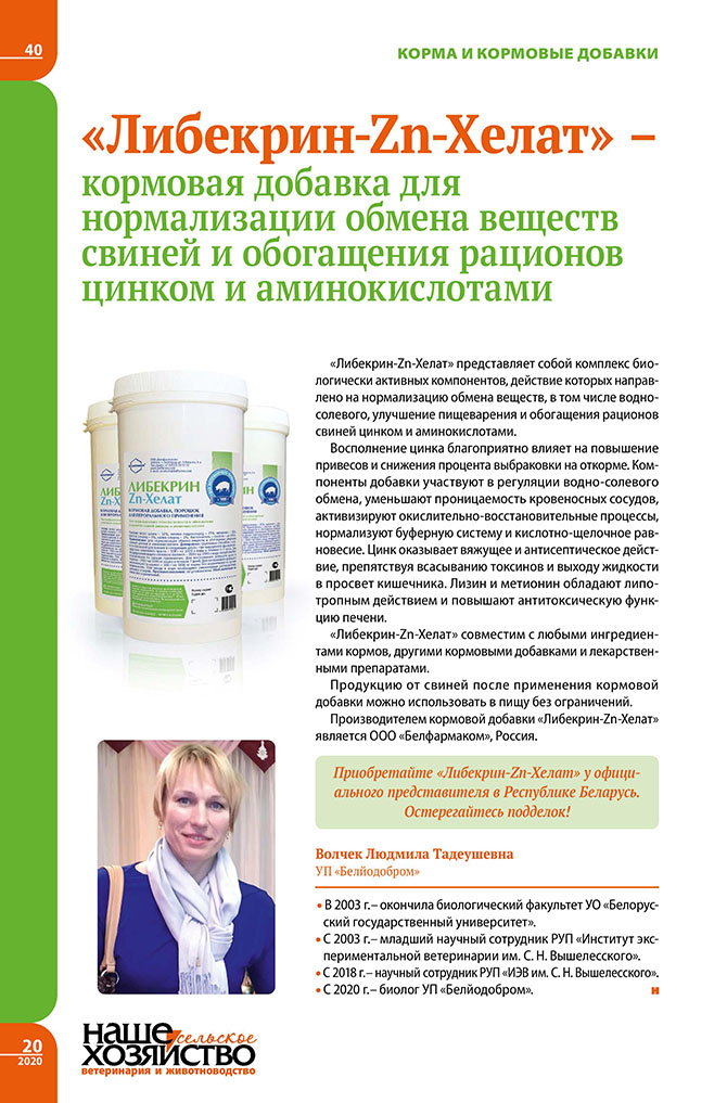 «Либекрин-Zn-Хелат» – кормовая добавка для нормализации обмена веществ свиней и обогащения рационов цинком и аминокислотами