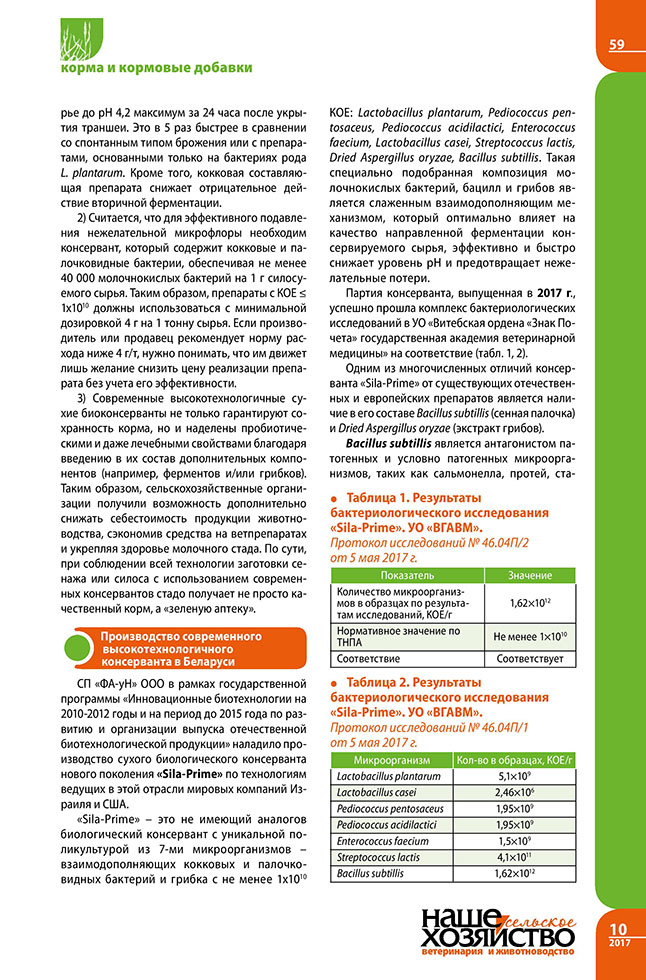 Выбор эффективного консерванта для заготовки кормов высокого качества