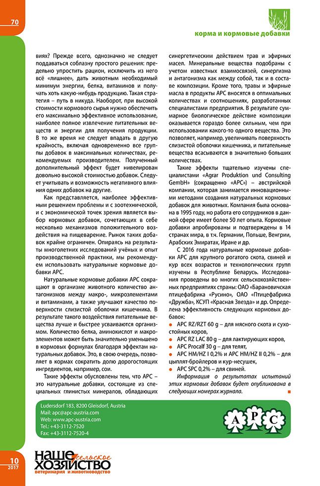 Курдеко А., Шобель П. Натуральные кормовые добавки АРС – это современно и своевременно
