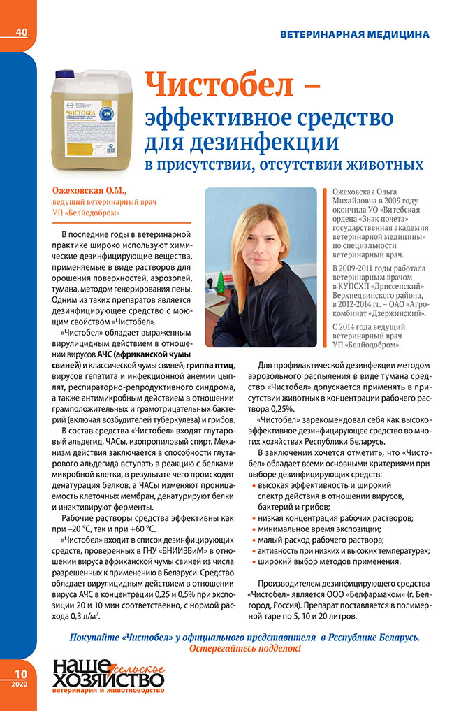 Чистобел – эффективное средство для дезинфекции в присутствии, отсутствии животных
