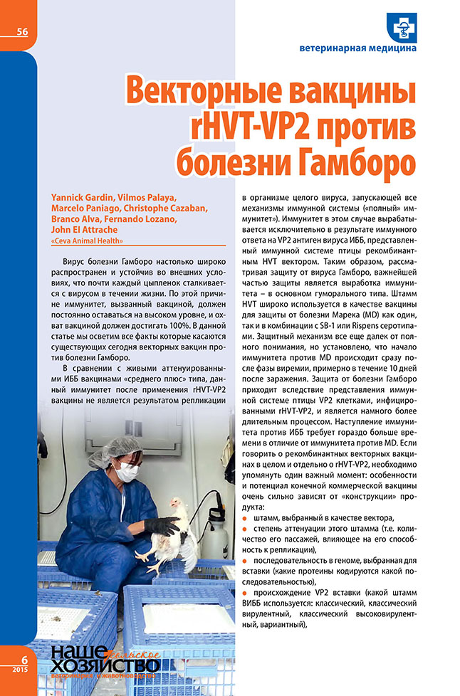 Yannick Gardin, Vilmos Palaya, Marcelo Paniago, Christophe Cazaban, Branco Alva, Fernando Lozano, John EI Attrache. Векторные вакцины rHVT-VP2 против болезни Гамборо