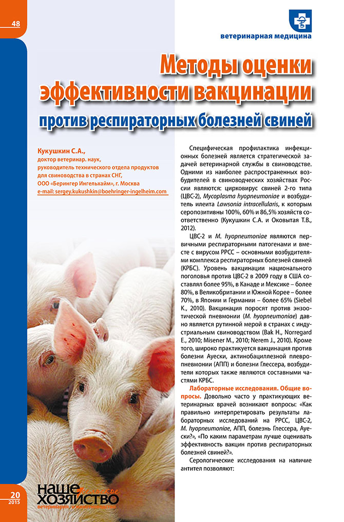Кукушкин С.А. Методы оценки эффективности вакцинации против респираторных болезней свиней