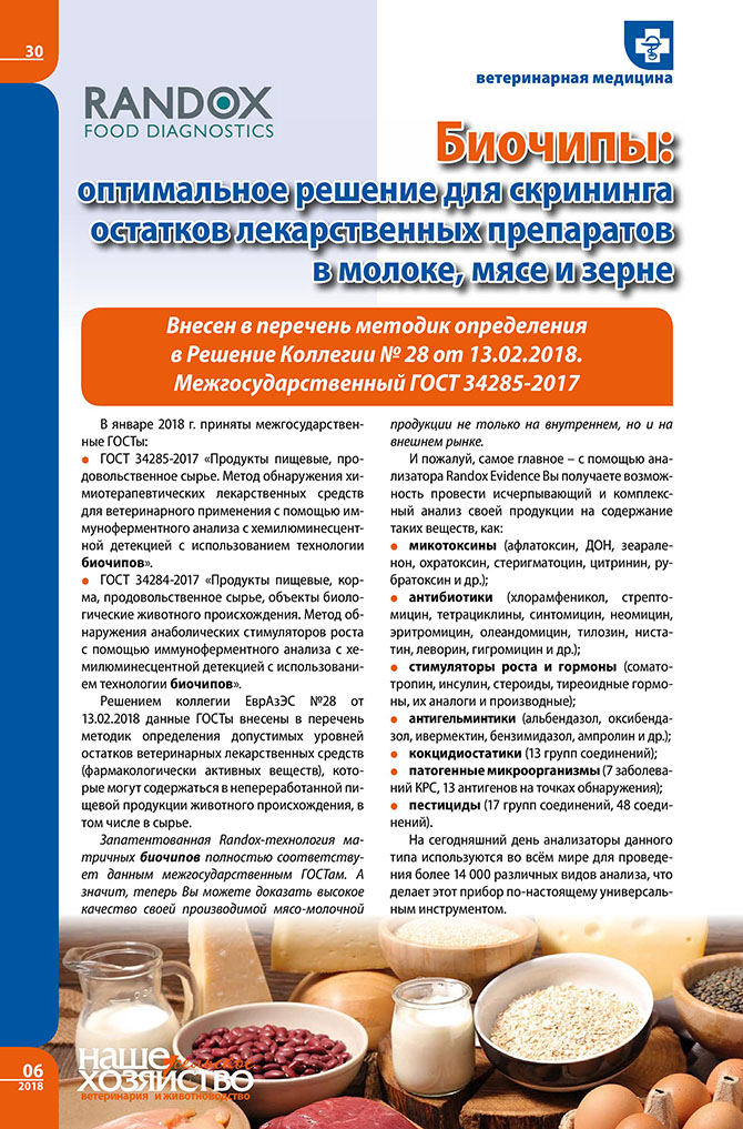 Биочипы: оптимальное решение для скрининга остатков лекарственных препаратов в молоке, мясе и зерне
