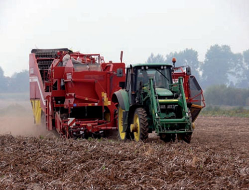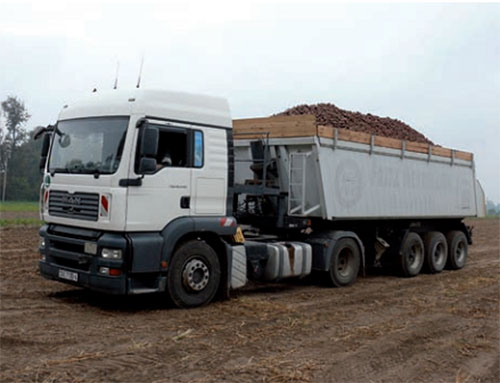 – Да, при хорошей погоде вывозим картофель с поля автомобильными полуприцепами. Это выгоднее и удобнее. На случай непогоды используем «галстук» – полуприцеп с поля вывозит трактор, а дальше перецепился и поехали. Относительно уборочной техники, у нас есть два комбайна с прямым подкопом и два – с боковым. Наш опыт показывает, что комбайн с боковым подкопом меньше травмируем клубни. А для нас качество продукции – самое главное.