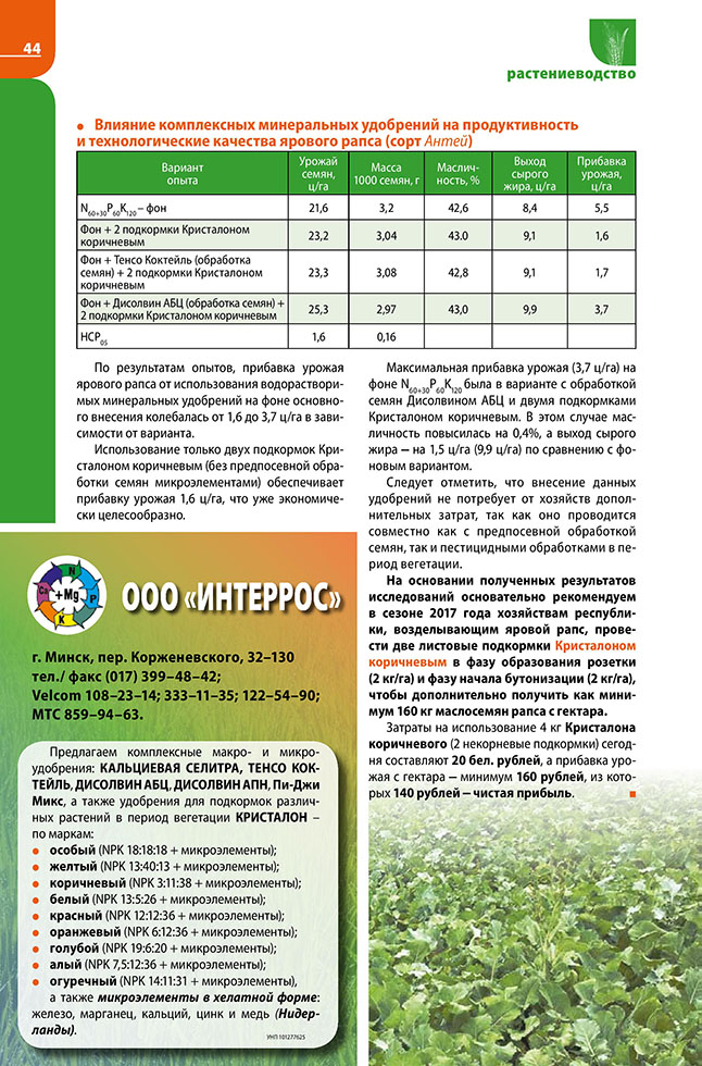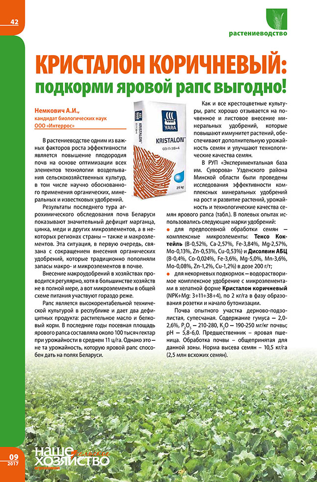 Немкович А.И. Кристалон коричневый: подкорми яровой рапс выгодно!