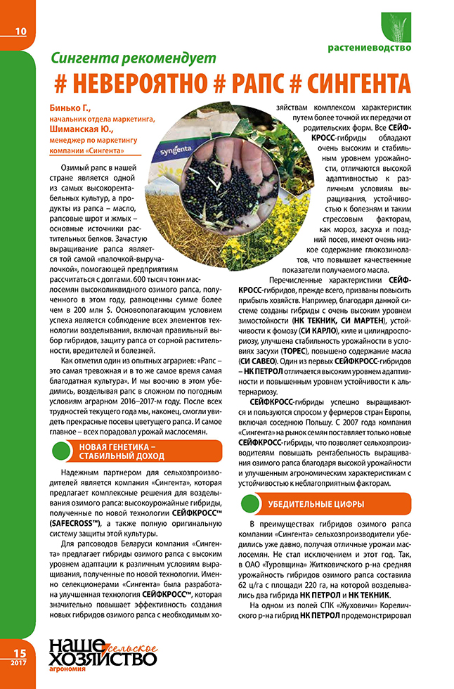 Бинько Г., Шиманская Ю. # НЕВЕРОЯТНО # РАПС # СИНГЕНТА