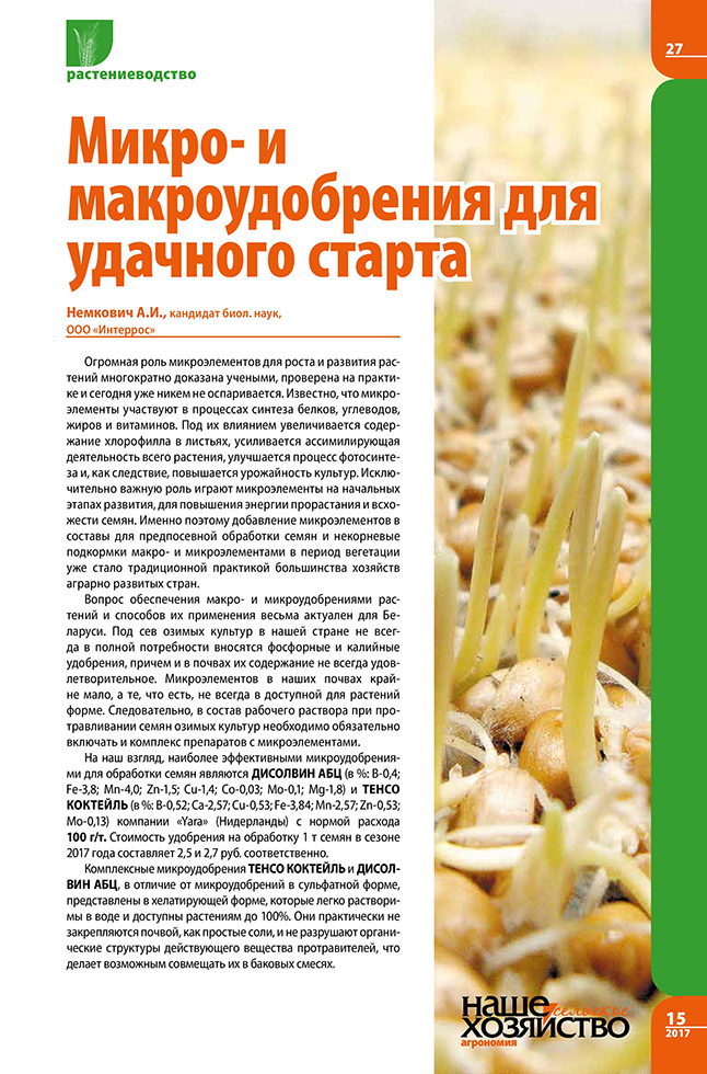 Немкович А.И. Микро- и макроудобрения для удачного старта