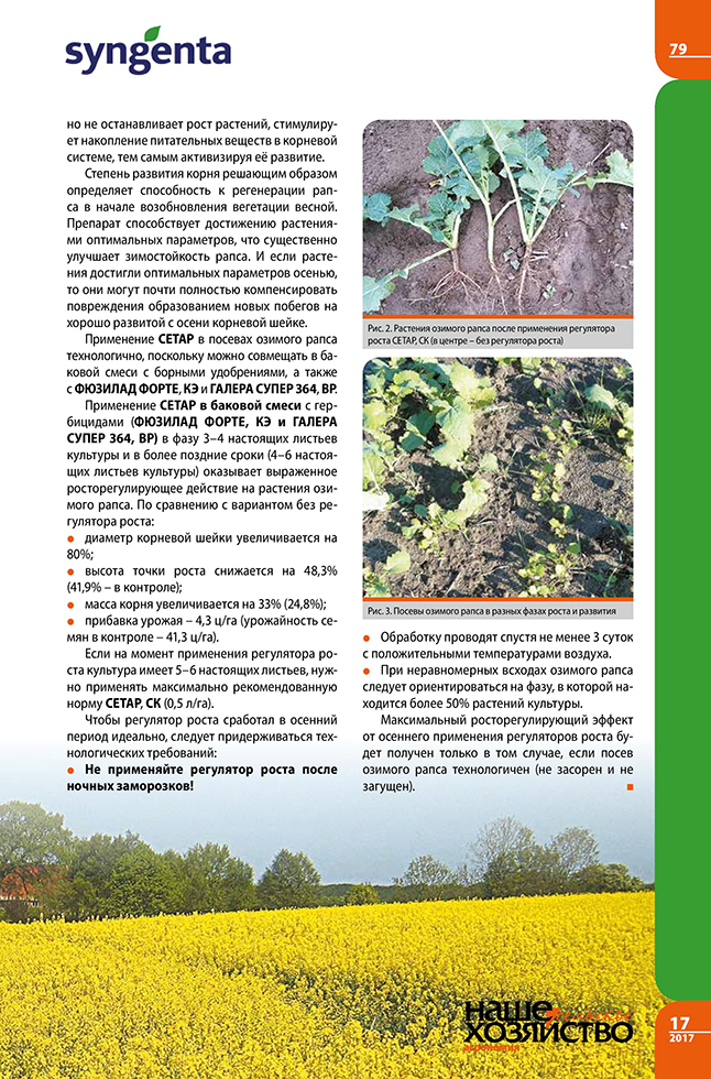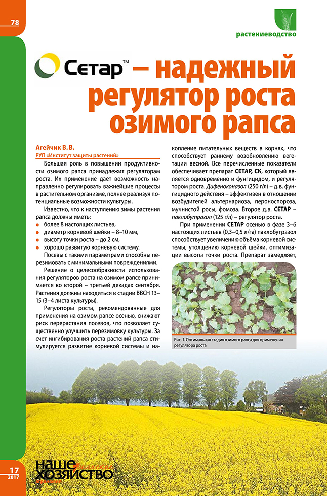 Агейчик В.В. СЕТАР – надежный регулятор роста озимого рапса
