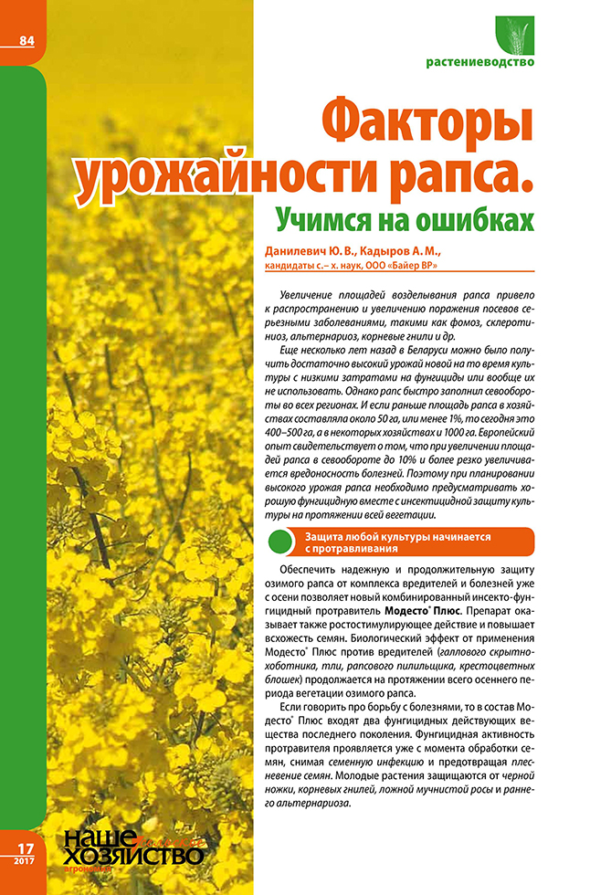 Данилевич Ю.В., Кадыров А.М. Факторы урожайности рапса. Учимся на ошибках