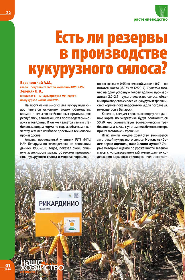 Барановский А.М., Зеленяк В.В. Есть ли резервы в производстве кукурузного силоса?