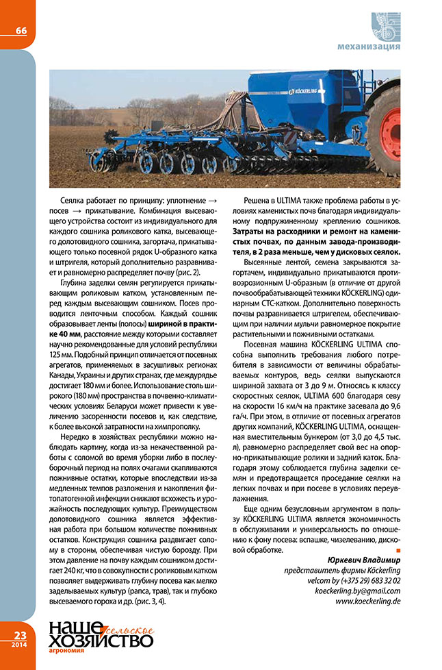 Юркевич В. Köckerling Ultima – качественный посев на любом фоне.