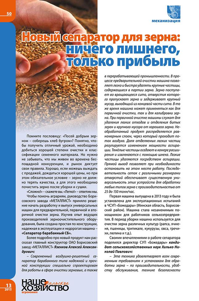 Новый сепаратор для зерна: ничего лишнего, только прибыль