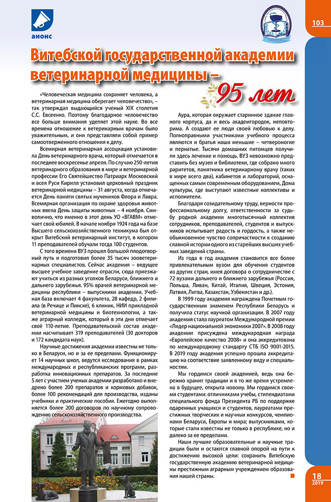 Витебской государственной академии ветеринарной медицины – 95 лет.