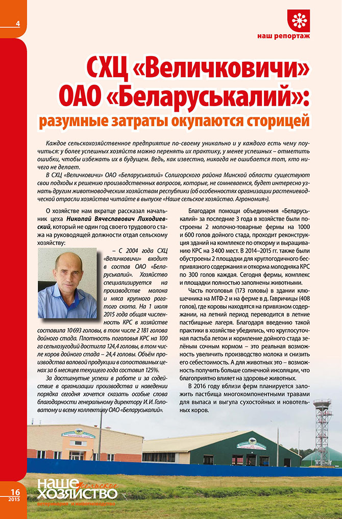 СХЦ «Величковичи» ОАО «Беларуськалий»: разумные затраты окупаются сторицей