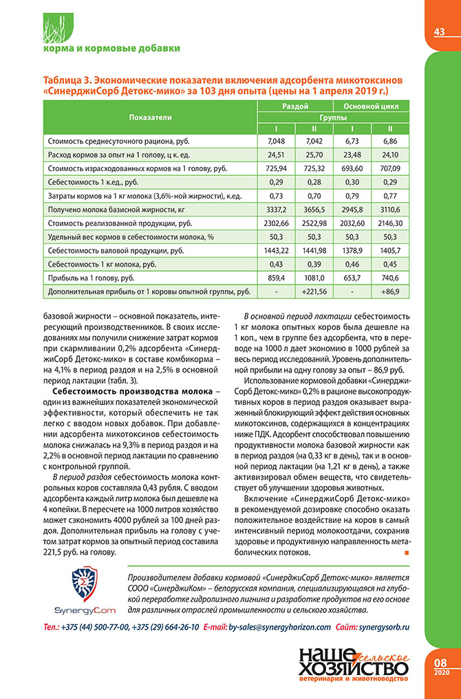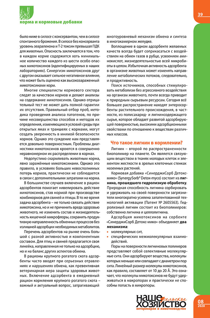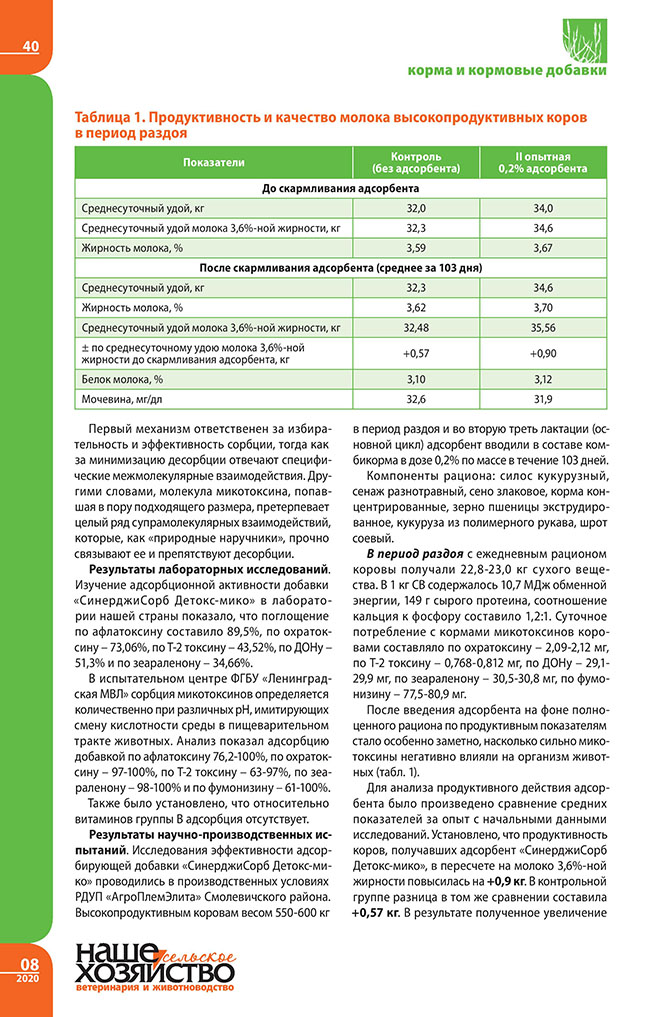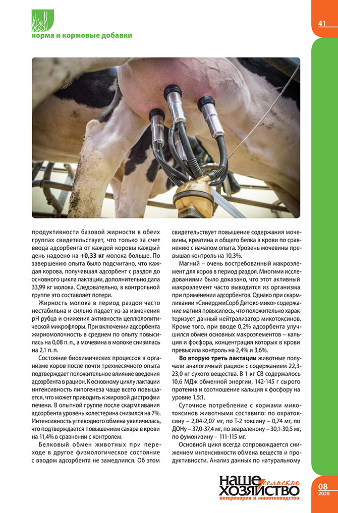 СинерджиСорб Детокс-мико – природный адсорбент микотоксинов в рационах высокопродуктивных коров