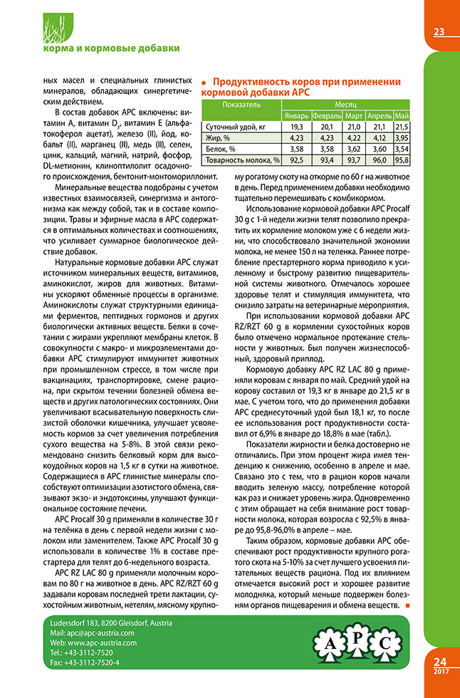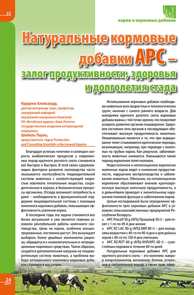 Курдеко А., Шобель П. Натуральные кормовые добавки АРС – залог продуктивности, здоровья и долголетия стада